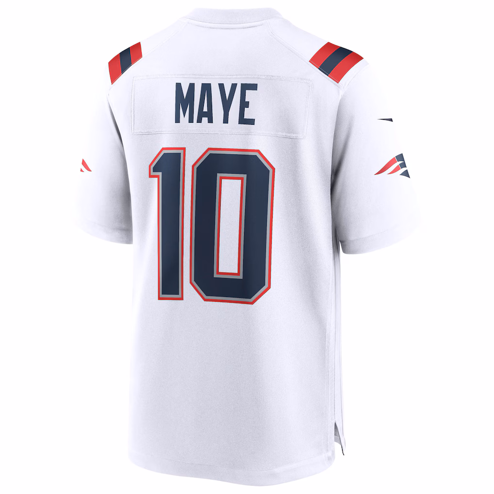 Men’s New England Patriots Drake Maye Nike White Super Bowl LX Patch Game Jersey